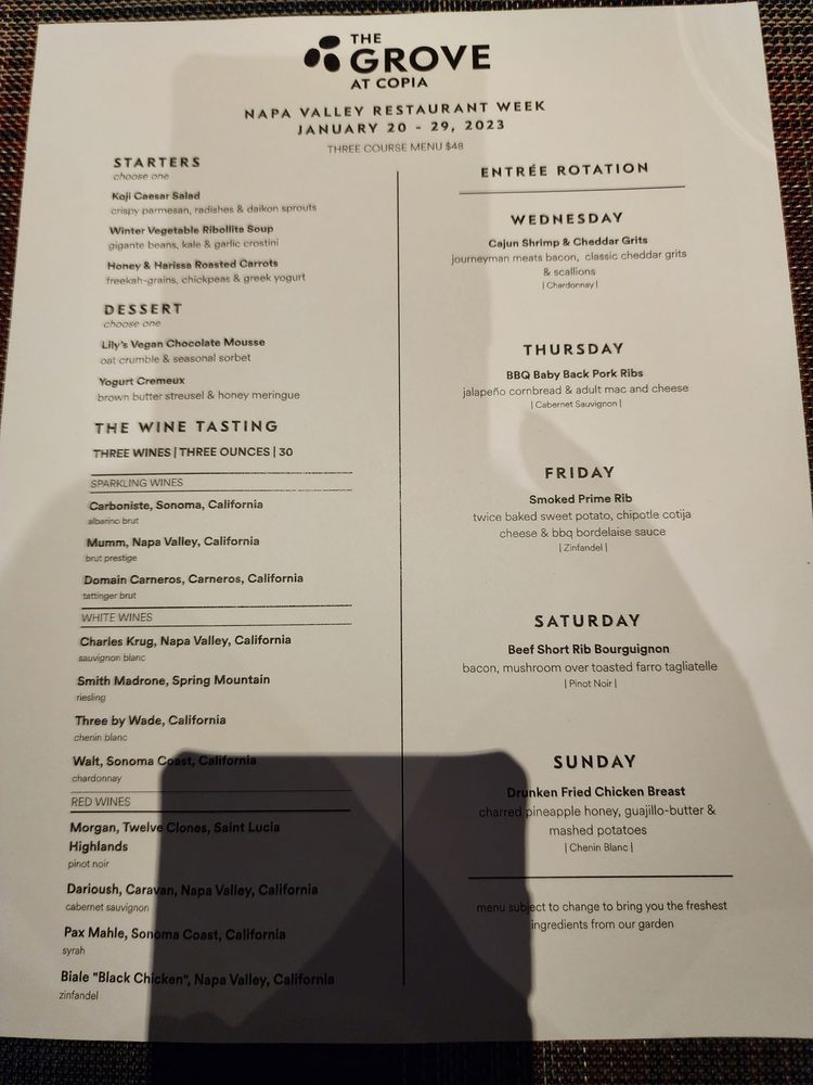 Welcome to The Grove at Copia, a hidden gem nestled in the heart of Napa Valley, where exceptional culinary experiences await. This delightful eatery champions the farm-to-table concept, showcasing a menu that bursts with freshness and creativity, all sourced from their own garden and local farms.